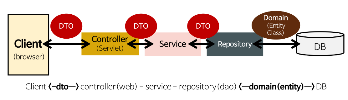 - Client와 DB 사이의 여러 계층 간 데이터를 교환 하기 위해 사용하는 객체